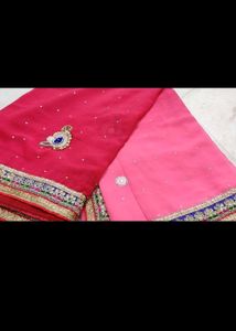 Beautiful pink saree with subtle white embellishments. Perfect for a special occasion or adding a touch of elegance to your everyday wear. The fabric is lightweight and comfortable, making it easy to drape and wear.
