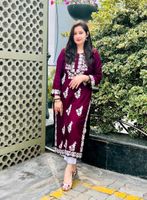 pinkish red suit with golden thread work,looks very nice ,four side golden border on duppatta.
