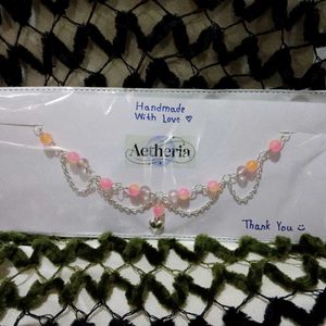 Delicate Pink beaded necklace that gives a princess vibe. The elegant work of chain with a sweet heart charm. Perfect for adding a touch of whimsy to any outfit. This dainty piece is ideal for wearing alone for a minimalist look. 💗✨🌷