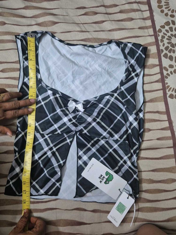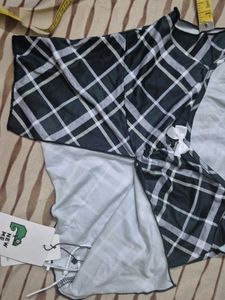 Cute black and white plaid top with a bow detail and matching skirt . Perfect for a casual day out or a night with friends. Add this trendy piece to your wardrobe!