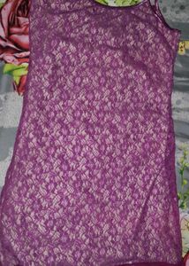 This is a cute purple lace mini dress. It has adjustable straps and a lace trim. The dress is perfect for a night out or a special occasion.