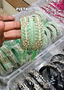 Gorgeous pair of purple velvet bangles. They feature a beautiful floral design with intricate beadwork and sequins, plus a lovely tassel. Perfect for adding a touch of elegance to any outfit.