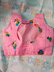 hey ladies.. here's a ready to wear blouse. Pink color, with embroidery and sequence work. blouse is back open with hooks. sleeves are attracted inside. its new one with price tag.