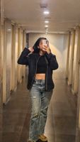 A stylish red button-down top, perfect for casual outings. Its classic design makes it a versatile addition to any wardrobe. Pair it with jeans or a leggins for a chic look. The fabric offers comfortable wear, making it suitable for various occasions. there is a lil stain but it is washable