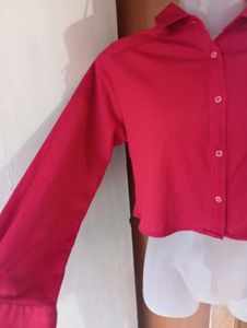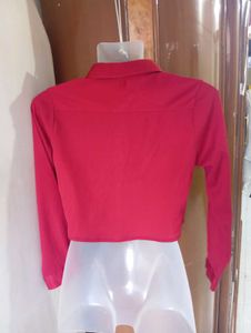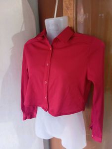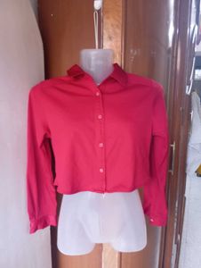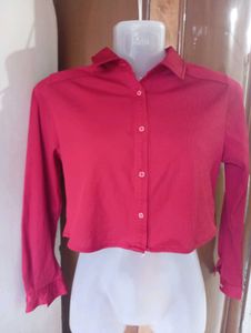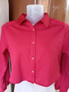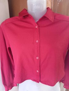Stylish red crop top shirt with a classic collar and button-down design. Perfect for casual outings or dressing up for a night out. The cropped length adds a modern touch. Pair it with high-waisted jeans or a skirt for a chic look.