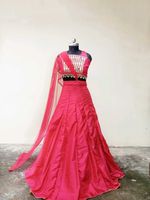 Stunning royal blue lehenga choli set, perfect for parties and festive occasions. The set features a beautiful blouse and flowing skirt. Accessorize for a complete traditional look and make a statement at your next event! The vibrant color and elegant design will surely turn heads.