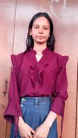 Elegant ruffled blouse, perfect for adding a touch of vintage charm to your outfit. Features a unique design that’s sure to make a statement. Great for both casual and semi-formal occasions. Pair with jeans or a skirt for a stylish look.