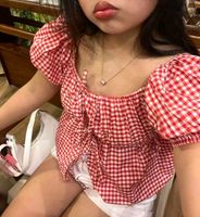 fixed price busy size-34-36 can wear it as it’s abit stretchable ✔️ Super cute floral print top with tie detailing. Perfect for adding a touch of sweetness to any outfit! Great for casual wear or dressing up. Pair with jeans or a skirt for a stylish look. Comfortable and breathable fabric.