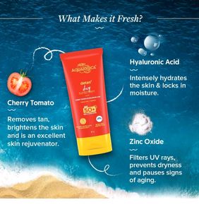 Introducing, the ultimate wingman to protect, detan, hydrate and make your skin even! Detan+ Dewy Sunscreen, crafted with Cherry Tomato and Hyaluronic Acid that prevents sun damage while intensely hydrating and moisturizing the skin. It works flawlessly in removing tanning, while also reducing existing tan. With its armor of SPF 50+ and PA++++, it works effectively as a shield against both UVA/B rays & blue light.