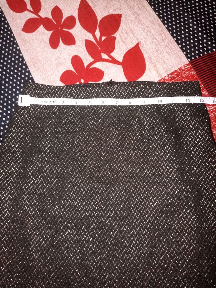black skirt with shiny silver golden pattern. chain on backside stretchable upto waist size 30 and can also fit size 26