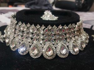 silver colour with pair of earrings and Tika original piece heavy diamond work