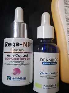 Get a complete skincare routine with this bundle! Includes Rega-NP Acne Control Serum, DermDoc 2% Salicylic Acid Serum, Good Vibes SPF 50 Sunscreen Lotion, Foxtale Retinol Night Serum, and Dot & Key Cica Calming Skin Clarifying Toner. Perfect for all skin types! used only 1-2times..retinol serum is completely new not used
