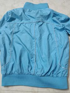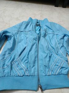 Sky blue fancy jecket for female Bust-34" full sleeve, front opening with zipper it's not warm 2 pockets front side , west stretchable no stain/ one side pocket only zip tip is not available rest of no damages and no defect you carry at partywear/office/college