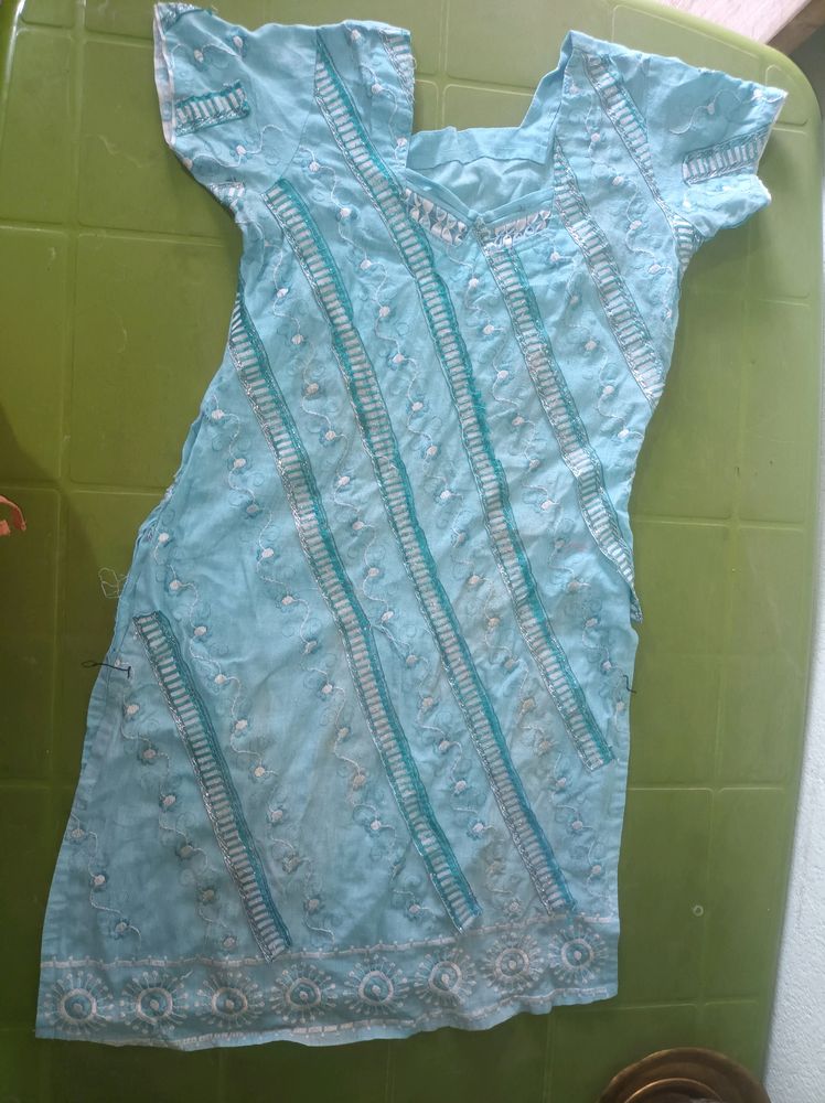 sky blue kurti for women with white leggings. white laggins is not shown in picture but it will be provided.