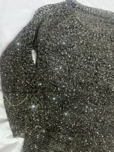 knit top with subtle sparkles. Perfect for evenings out or adding a touch of glamour to your everyday look. Comfortable and stylish, this top is a versatile addition to any wardrobe. Dress it up or down for different occasions. A great piece for layering or wearing on its own.