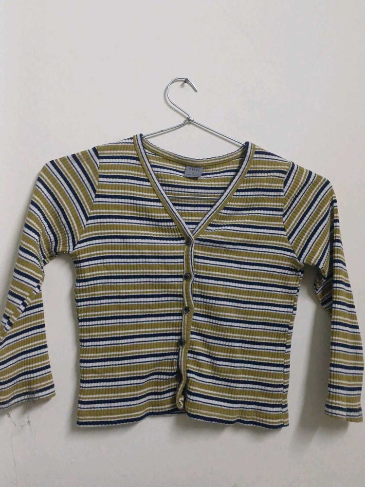 Cute and casual striped top with button-down front and long sleeves. Perfect for layering or wearing on its own. Great for everyday wear. Versatile style that can be dressed up or down.