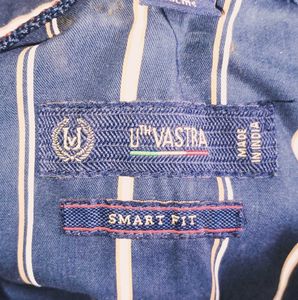 Classic navy blue and white striped shirt, perfect for a casual look. Features a button-down style and comfortable fabric. Ideal for everyday wear. Can be dressed up or down for versatile styling.
