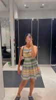Cute mini dress with a striped pattern. Perfect for casual outings or a day at the beach. This dress is comfortable and stylish, great for warmer weather. Accessorize with sandals or sneakers for a relaxed look.