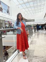 Beautiful red dress with a unique pattern. Perfect for a casual day out or a special occasion. The dress is in good condition and ready for a new home. Get this stylish dress now! It features a comfortable fit and a flattering silhouette.