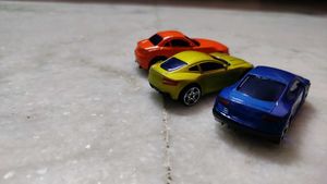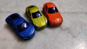 Set of three colorful toy cars. Perfect for kids and collectors! These miniature vehicles are ready for imaginative play or display. Get ready to rev up your imagination with this vibrant set of cars. • Excellent condition • New