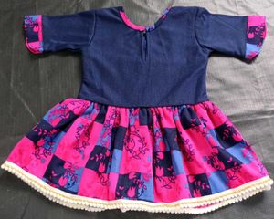 Color Scheme: The frock features a combination of navy blue, red, and patches of light blue with floral prints, giving it a vibrant and eye-catching appearance.