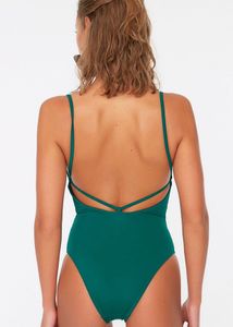 Elevate your beach look with this stunning green swimsuit from Trendyol. Worn just once, it's in excellent condition. Featuring a flattering neckline and chic open-back design, it’s perfect for beach days, poolside lounging, or standing out at resort getaways.