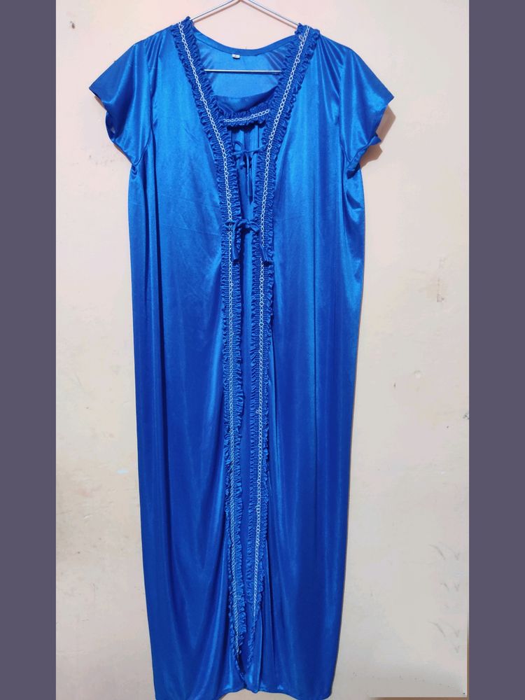 - Women nighty - Fits upto bust 40 - It's a two piece nighty - The inner piece has a side slit - It's having a loose stitch (picture included) but it can be stitched - The shape is nearly a fish cut - The length of inner piece is a bit shorter than outer one - check out my closet for similar ones in colour sea green and pink