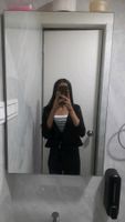 Unique two-tone jacket featuring a denim and solid fabric design. Stand out with this stylish and trendy piece. Perfect for adding an edgy touch to any outfit. Excellent condition.