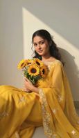 Elegant Blue Ethnic Gown with Gold Embroidery
