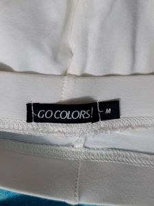 White cropped leggings with a comfortable elastic waistband. Great for casual wear or layering!