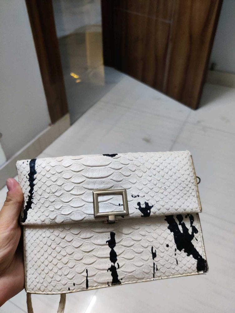 White Faux Leather Sling Bag