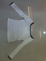 Elegant white long sleeve top with a dark trim. Perfect for layering or wearing on its own. Comfortable and stylish, great for casual outings or dressing up for a night out. A versatile addition to any wardrobe.