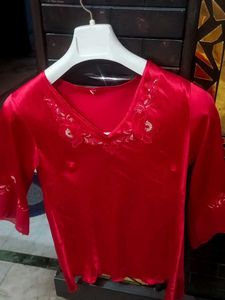 Red Embellish Night Suit