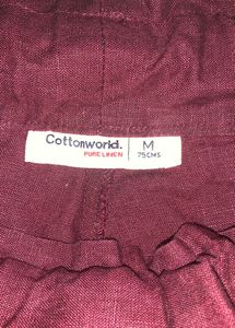 Women's pure Linen Maroon/Red Regular Fit Pant