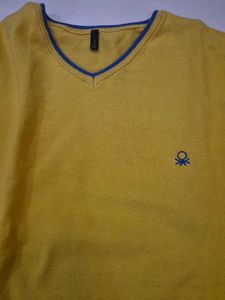 Classic yellow sweater from Benetton. Perfect for layering or wearing on its own. Soft and comfortable material. Great for casual wear. In good condition. A versatile piece for your wardrobe.