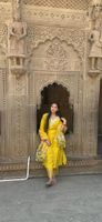 Beautiful yellow lehenga choli set with a printed dupatta. Perfect for festive occasions or parties. The set is in good condition and ready to wear. Comfortable and stylish ethnic wear.
