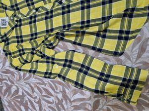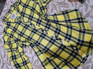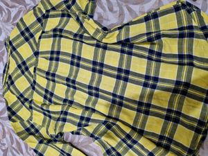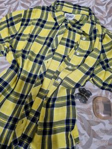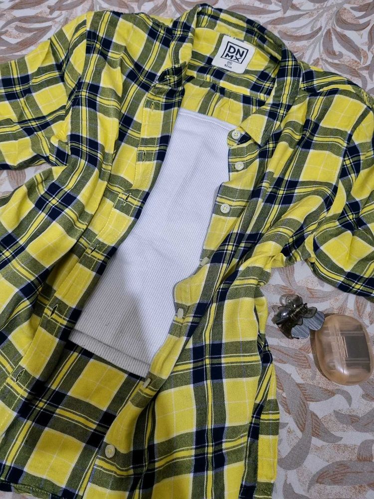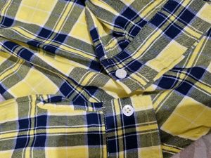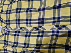 Classic yellow and navy plaid flannel shirt. Perfect for layering or wearing on its own. Soft and comfortable fabric. Great for casual outings or adding a pop of color to your wardrobe. Can be styled in multiple ways. Style it as u want. perfect for a day out size - M perfect..will sit S and L perfectly too.. Go for it without any thought its brand new. Grab it before its gone with your bargaining skills...!!