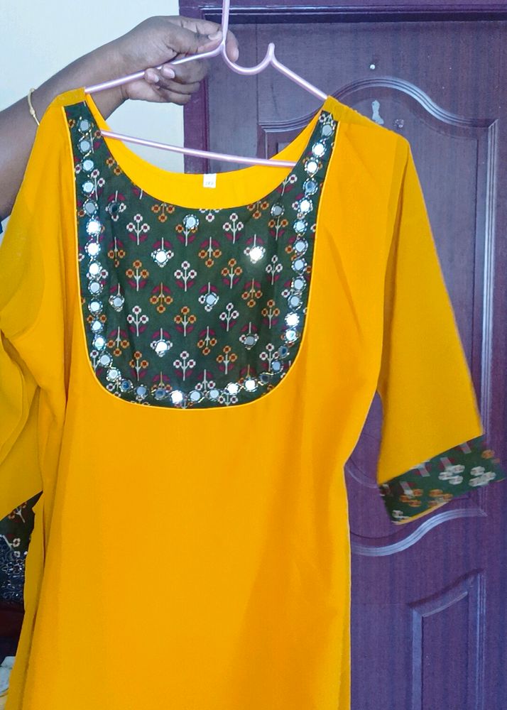 #mango #yellow #georgette #kurti #aline #lining #attached #anniversary #sale #offer #women #modern #trendy