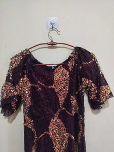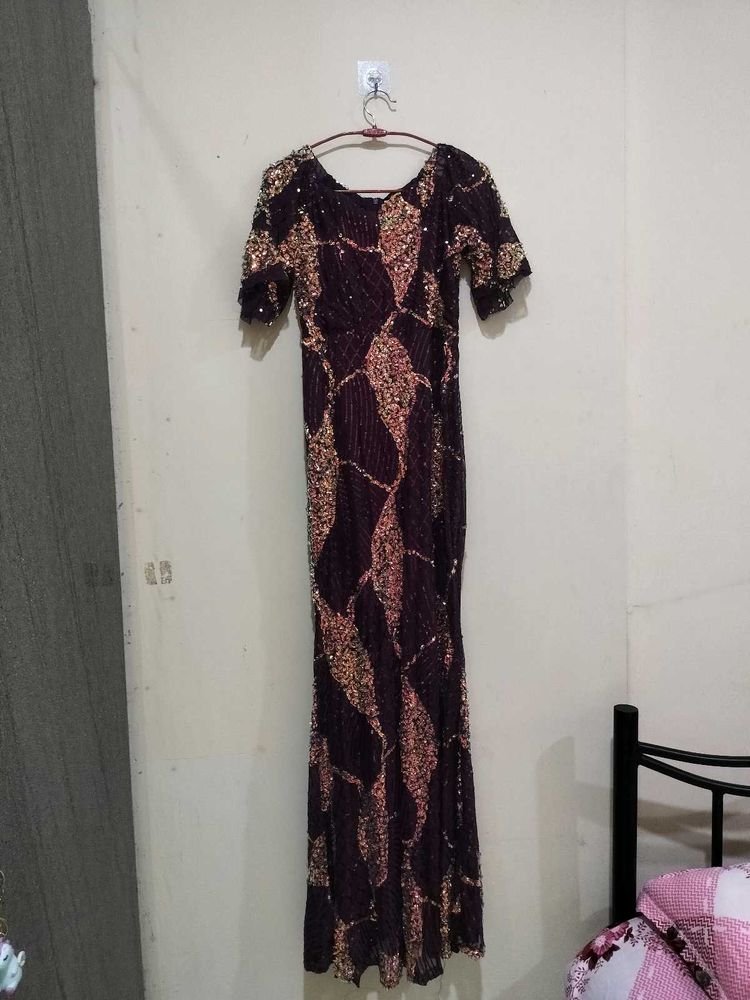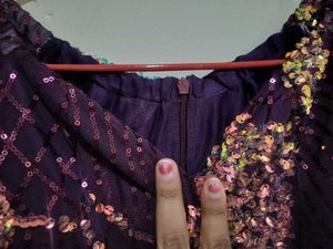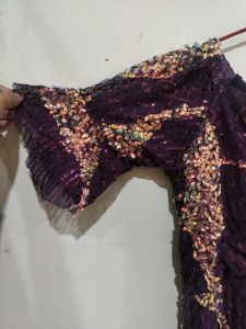 unused and pre-owned, not worn once since never got the opportunity, the product is one of its kind , with glass sleeves with a frill patterned stitching and same goes for the bottom stitching.